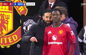 在曼联与伯恩茅斯的英超联赛中,20岁的英...